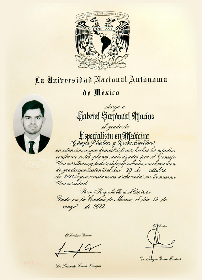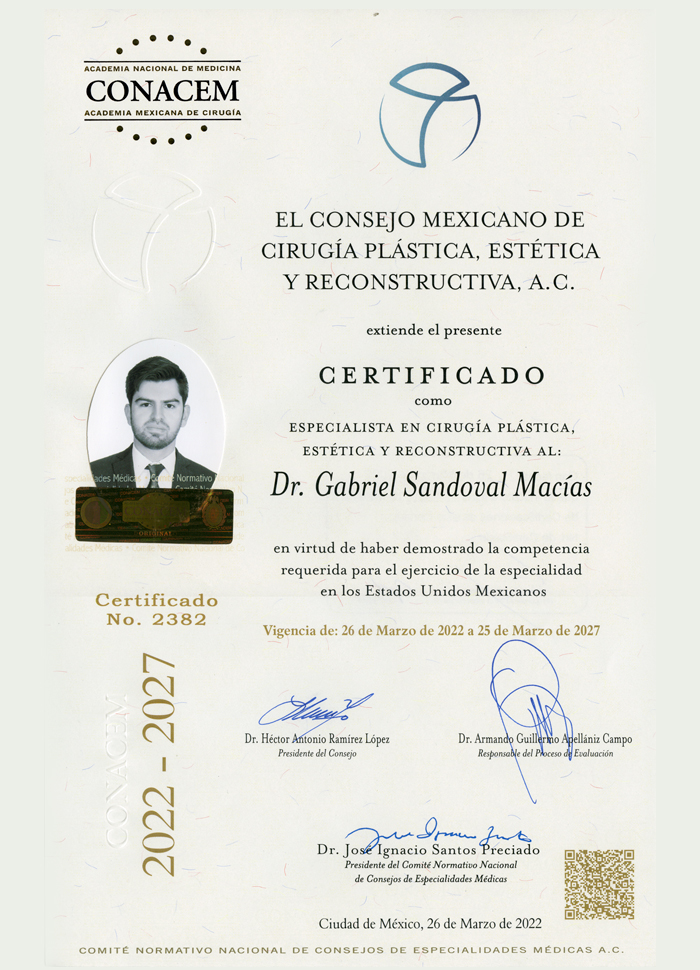 His impressive medical education and advanced surgical training laid the foundation for his successful plastic surgery practice. A native of Ensenada, Dr. Sandoval completed his Medical Degree at the National Autonomous University of Mexico. He earned his specialty Aesthetic and Reconstructive Plastic Surgeon where he also completed his plastic surgery residency. He is highly valued in the plastic and reconstructive surgical community as a highly qualified expert.